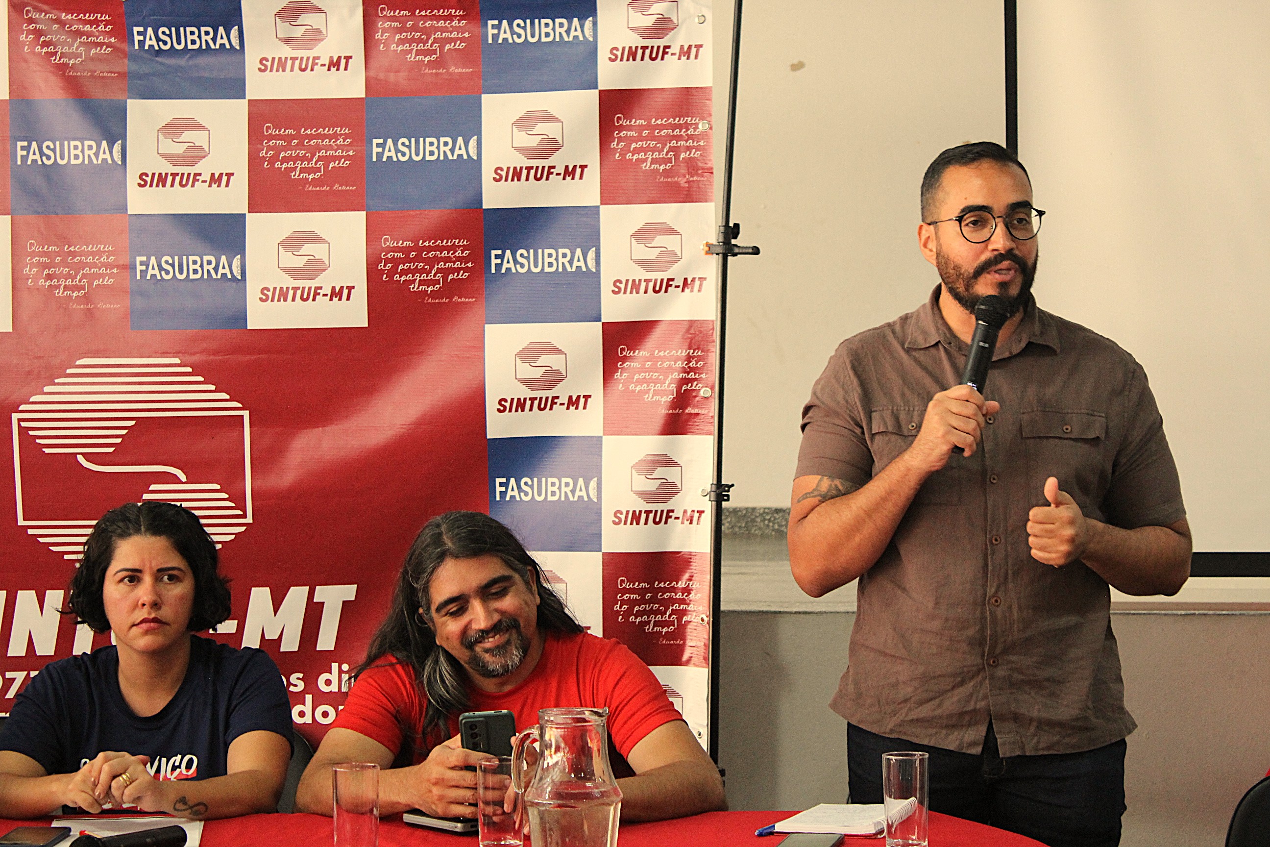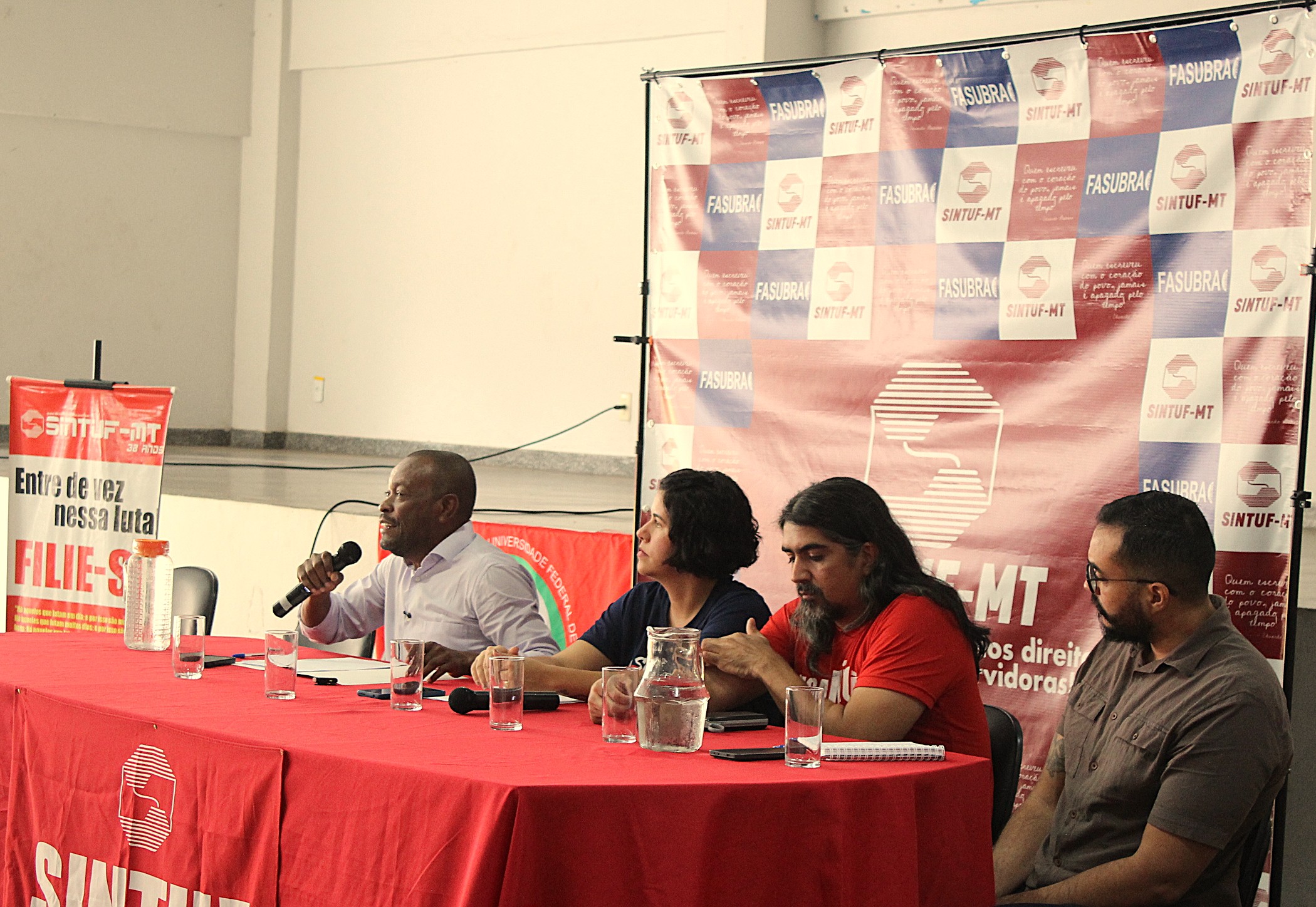 Após a saudação, permaneceram os representantes sindicais para fazer o debate. O presidente da CUT em Mato Grosso, Henrique Lopes, abriu sua intervenção alertando que a proposta de carreira divulgada pelo governo em 1º de dezembro não é um simples ajuste administrativo, mas parte de um pacote maior de alterações que “mexem em mais de 40 artigos da Constituição, inclusive o artigo 5º, núcleo duro dos direitos sociais”.