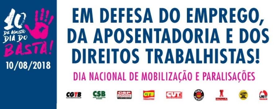 Nessa sexta-feira, 10/08, os trabalhadores de todo o país vão as ruas para realizar mais um protesto contra os ataques aos direitos e em defesa do emprego: o Dia do Basta! Convocado em conjunto pelas centrais de trabalhadores, as mobilizações deverão repercutir em cidades de todos os estados.