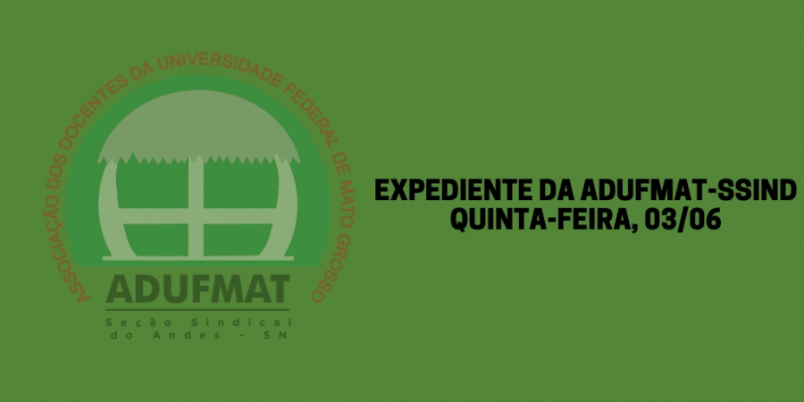 Expediente na Adufmat-Ssind nessa quinta-feira, 03/06