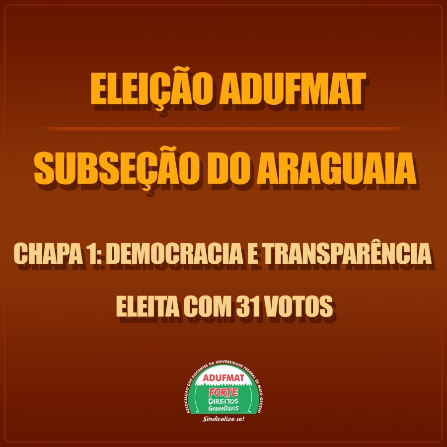 Eleição Extemporânea para Diretoria da Subseção Araguaia da Adufmat-Ssind - Resultado da votação